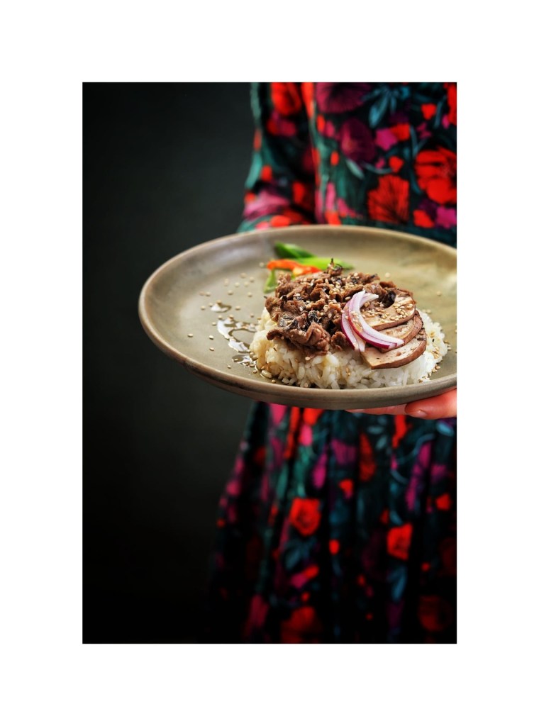 Thin slices of Irish beef are marinating in a preparation with pear, garlic and Ganjang sauce. Meeting the vegetables in a hot pan, they exchange a few words before their short cooking is complete. Topped with green onions and sesame, the Bulgoggi is a comforting yet intense dish.