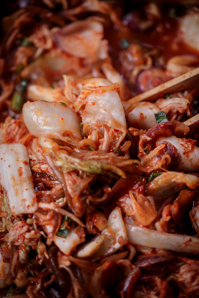In autumn and winter, we add organic butternut that we grew in our garden near Tournai. In the old days, people used to wrap a piece of pork in freshly made Kimchi, and we highly recommend you to do the same. A pot of homemade Kimchi with Bossam is considered to give a similar experience as entering heaven.